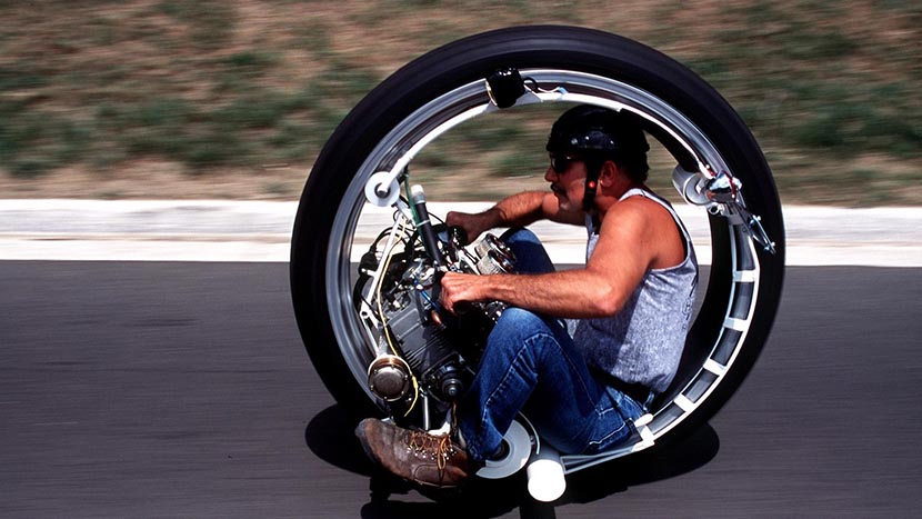 А вот американец Керри Маклин не хотел ни коммерческого признания, ни славы, хотя благодаря своему изобретению в Книгу рекордов Гиннесса все же попал. Для этого он разогнался до 100 км/ч на моноцикле собственной конструкции. Для имевшего за плечами большой опыт в строительстве кастомных байков Маклина создать такой аппарат не составило труда.