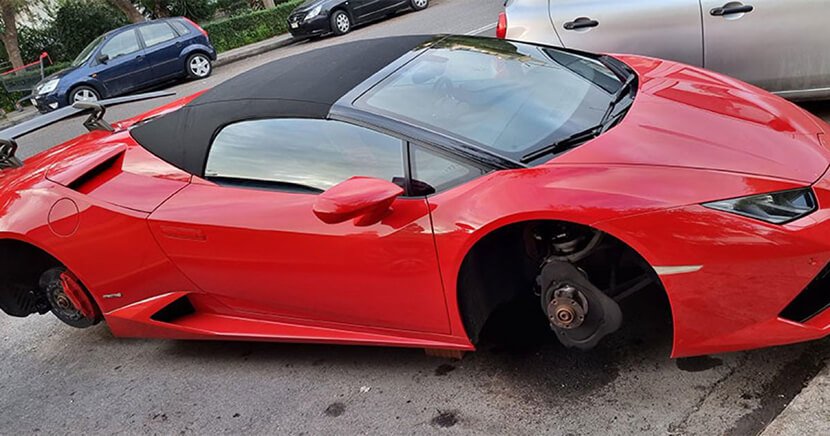 Да, фотографировали впечатляющий родстер не столько за его красоту, сколько за то, что он покоился на кирпичах, тогда как колеса на всех четырех ступицах отсутствовали. А с передней оси еще и карбон-керамические тормозные колодки вместе с дисками стырили. Ситуация, достойная быть запечатленной в фильмах Гая Риччи.