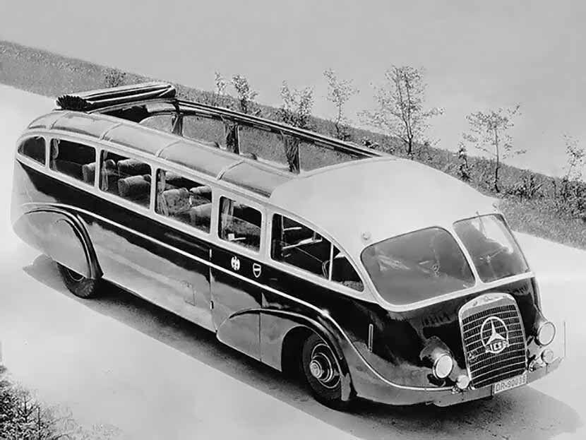 В 1935 году Mercedes-Benz построил автобус Lo 3100 Stromlinien-Omnibus. Несмотря на то что модель отличалась аэродинамическим корпусом каплевидной формы, само шасси было позаимствовано у грузовика (на нем же строился упрощенный автобус Lo 3100). По этой причине количество пассажирских мест ограничивалось всего 22 единицами. Но упор в их проектировании был сделан на комфорт: у кресел откидывались спинки, а в салоне присутствовали системы кондиционирования и отопления. Пассажирская и водительская зоны в автобусе были четко разграничены.