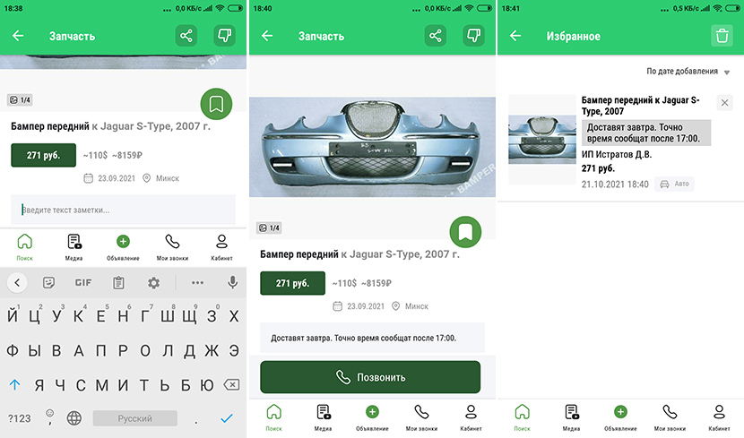 После создания заметки заинтересовавшее вас объявление автоматически попадает в «Избранное» – позже все это можно пересмотреть и вернуться к вашим записям.