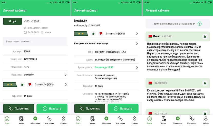 Многие покупатели ценят BAMPER.BY за честные отзывы о продавцах автозапчастей – перед покупкой вы можете легко ознакомиться с ними в мобильном приложении.