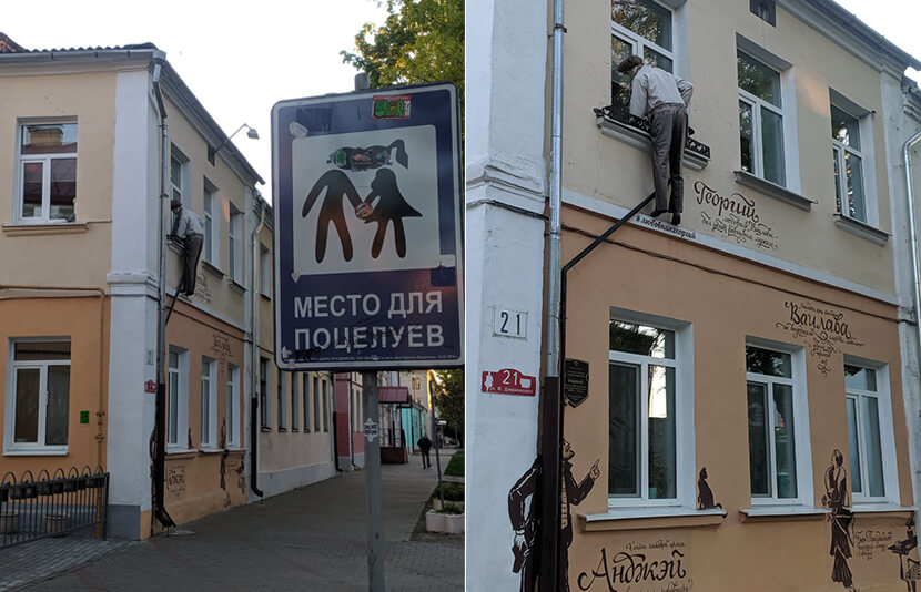 Однажды, гласит легенда, обманутый муж узнал о том, чем занимается жена, подкараулил Георгия и убил его выстрелом в грудь, когда любовник по привычке заглянул в окно второго этажа. Вацлава в тот же день приняла яд, не вынеся потери. Местные жители говорят, что сердце Георгия так и осталось в этом доме. Иногда в окне второго этажа можно увидеть две тени – мужчины и женщины. История вдохновила брестчан на создание памятника: герой-любовник в трусах должен был навсегда остаться возле водосточной трубы, пытаясь попасть в окно на втором этаже. Но руководство города посчитало, что памятник в трусах может шокировать гостей Бреста, и героя одели в штаны. Рядом с этим своеобразным романтическим памятником есть специальное «место для поцелуев» и даже стоит знак.