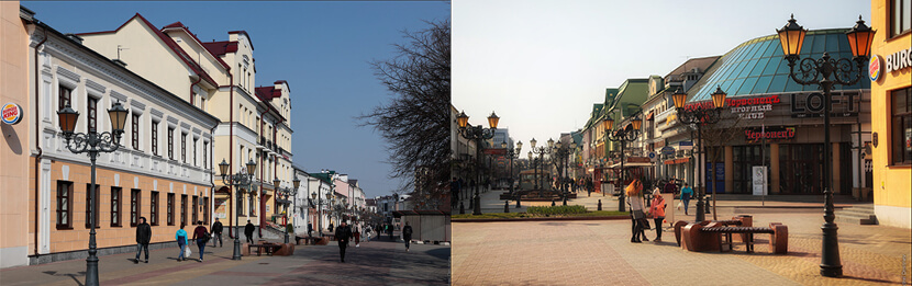 Начнем с местного Арбата – улицы Советской. Изначально она называлась Миллионной и Полицейской, затем была переименована в честь Ежи Домбровского, а во время войны стала называться Генералштрассе. После освобождения Бреста в 1944 году улица получила современное название Советская.