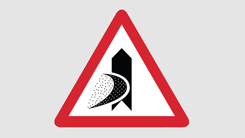 Еще одно странное дорожное обозначение не делает никаких отсылок к творчеству кубистов. Этот знак встречается на дорогах султаната Оман (Аравийский полуостров) и обозначает участки проезжей части, на которых возможна песчаная буря.