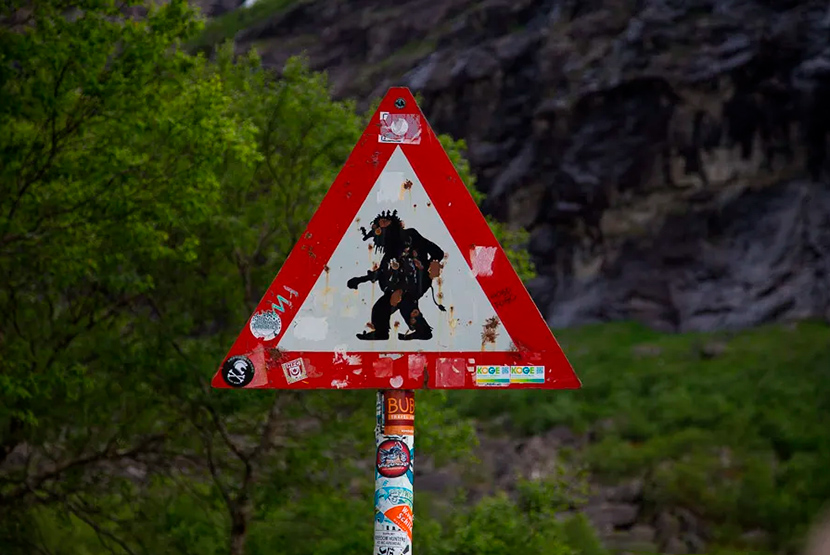 Дорожный знак «Осторожно! Тролли!» можно встретить в Норвегии. Его предметное назначение остается загадкой, хотя суеверные местные жители уверены, что сбивать троллей ни в коем случае не следует. Вряд ли современная история помнит хотя бы один такой прецедент, но если вы окажетесь на месте пьяного пешехода, у вас, скорее всего, будут все шансы этих самых троллей увидеть. А то и побыть на месте таковых…