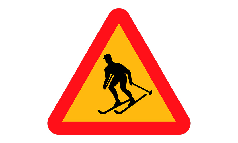 От медлительных пешеходов переходим к очень быстрым. В таких странах, как Финляндия, Дании и опять же Швеция, автомобилист может столкнуться с выскочившим с гор прямо на проезжую часть лыжником! Чтобы предостеречь водителей о подобной угрозе, а заодно предотвратить возможность сердечного приступа у последних, в обиход введен дорожный знак «Лыжники».