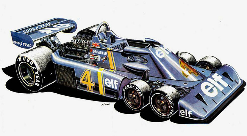 Самым громким примером в истории автомобилестроения, связанным с внедрением в классическую четырехколесную компоновку ТС третьей оси, является моделью Р34 Tyrell. Своим авторством она обязана Дереку Гарнеру, являвшемуся с 1970 года главным конструктором команды Tyrell. Этот человек всегда мыслил на опережение, и пилоты, выступавшие на болидах, к которым он приложил руку, как правило, получали чемпионские титулы. К примеру, только благодаря Гарнеру пилот Джеки Стюарт становился чемпионом дважды (в 1971-м и в 1973-м). Но к середине 1970-х годов даже этот инженер исчерпал все свои идеи по увеличению производительности контрактного мотора Ford Cosworth и модификации связанных с ним агрегатов.