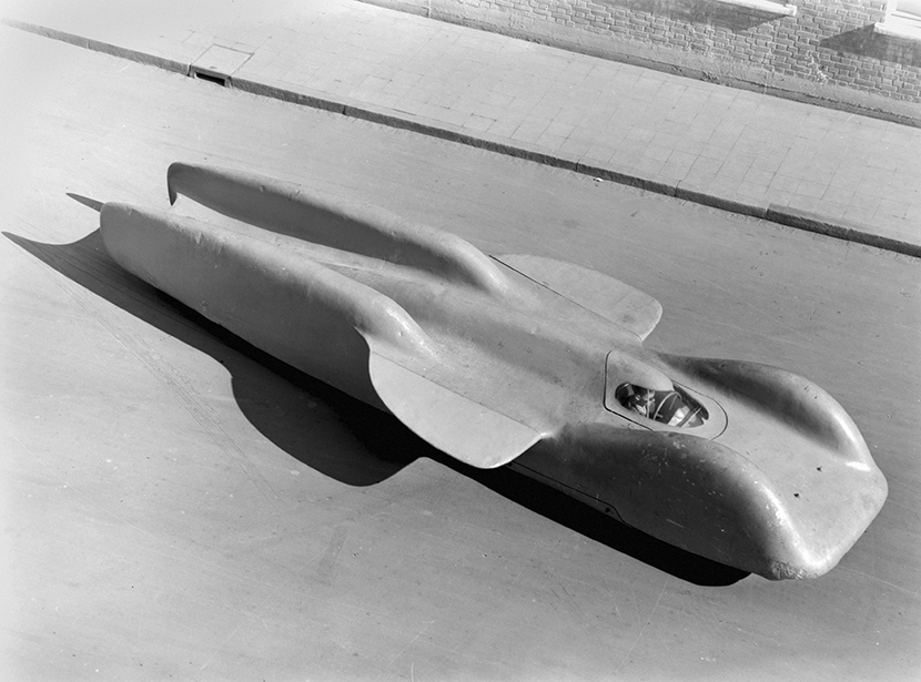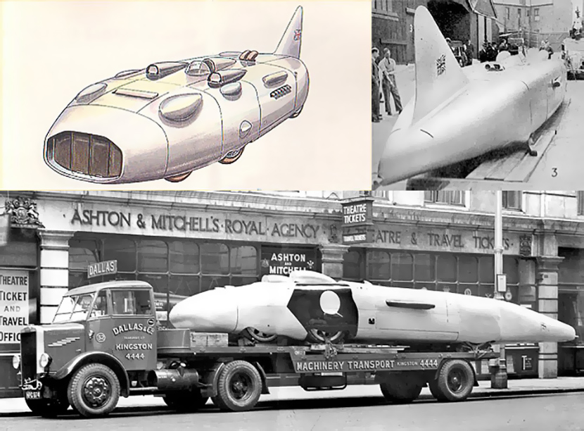 Работа над не имевшей в свое время аналогов машиной закипела. Ее шасси и кузовные панели были заказаны в Bean Cars – английской автомобильной компании прошлого века. Для формовки деталей корпуса там применялся очень легкий новейший сплав на основе магния и алюминия. В итоге болид, названный Thunderbolt (от англ. «Молния»), оказался больше похож на самолет – пусть и без крыльев, зато с хвостовым оперением, игравшим роль аэродинамического тормоза.
