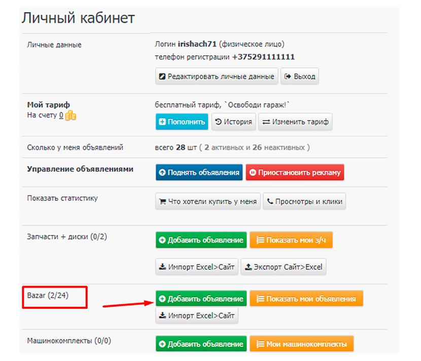 Регистрация физлица с примерами / скриншотами: и в Личном кабинете добавить свои объявления в разделеBazar.