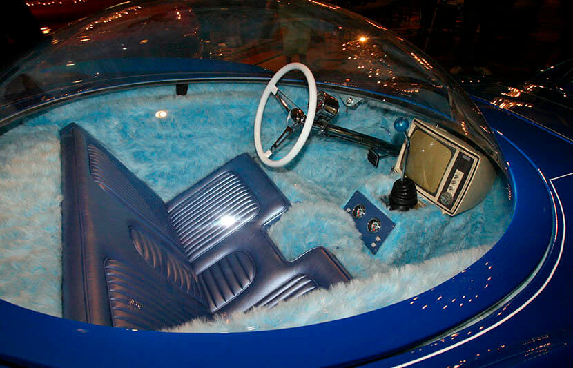 Обтекаемый кузов для своего космического автомобиля Эд Рот создал из стекловолокна. Салон авто был отделан кожей и мехом, а на центральном тоннеле разместился работающий телевизор.