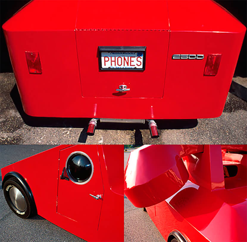 Кузов, имитирующий телефонный аппарат, был сделан из алюминия, включая огромную трубку на крыше. Вместо стандартного сигнала клаксона в The Phone Car звучит сигнал вызова, а регистрационный знак представляет собой слово PHONES. Несмотря на диковинный корпус, автомобиль обладает всеми необходимыми качествами для езды по дорогам общего пользования.
