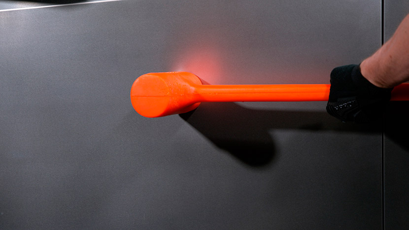 Презентация. Маск стоит рядом с дверью обычного пикапа. Инженер бьет по ней кувалдой – вмятина. Затем та же кувалда обрушивается на дверь Cybertruck из «собственной сверхтвёрдой холоднокатаной нержавеющей стали 30X». Звон! Ни царапины! Маск, гордо: «Вы можете ударить эту штуку кувалдой, и это не повредит ей. Это настоящий грузовик. Он сделан из того же сплава, что и Starship. Он пуленепробиваемый!»