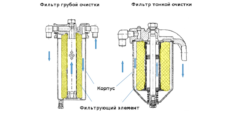 Очистка топлива — двухступенчатый процесс, выполняемый фильтрами грубой и тонкой очистки. Первый этап идет в топливоприемнике или в баке (для погружного фильтра). Фильтры тонкой очистки могут размещаться в виде отдельного узла в подкапотном пространстве или под днищем. Такие изделия еще называют магистральными. Оба вида фильтров удобно менять, в отличие от погружной конструкции.