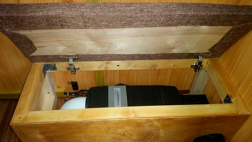 Также отметим, что под днищем ГАЗ-66 установлено два топливных бака емкостью по 105 литров. Иным автолюбителям достаточно использовать по прямому назначению лишь один из них, тогда как другой является еще одной нишей для хранения дополнительного аккумулятора и автономного генератора, питающего, к примеру, салонный отопитель, бытовую технику и телевизор с модулем Wi-Fi, если в их установке владельцы грузовика видят необходимость. Топливо при этом хранится в канистрах, для которых на корме предусмотрены специальные крепления.