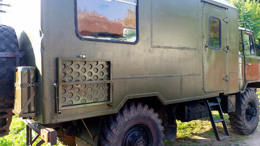 Однако нас интересуют исполнения командно-штабной машины Р-125 и Р-142. На военной службе с их помощью осуществлялось обеспечение двусторонней радиосвязи, а на гражданке их вместительные кунги являются широким полем для творчества. Стенки у них имеют заводское утепление из минваты. При этом они достаточно толстые, чтобы установить в них стеклопакеты небольших размеров вместо оригинальных окон на одно стекло, сулящих большие теплопотери при отоплении в холодное время года.