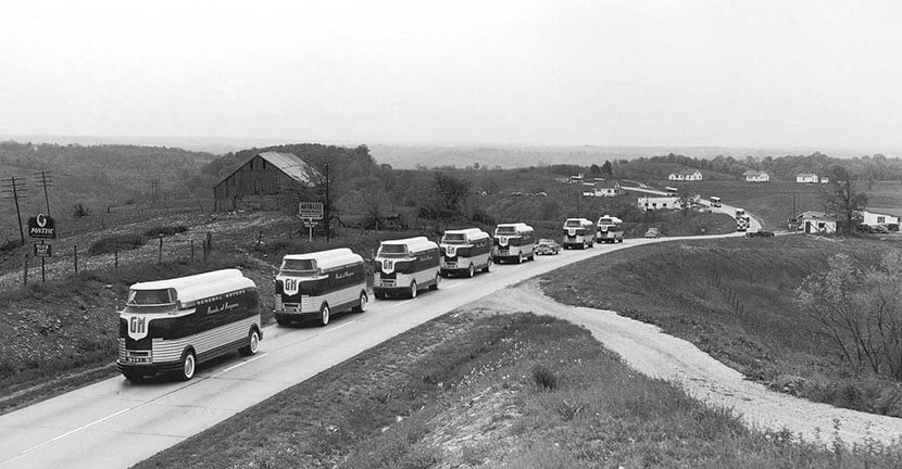 Поэтому в 1936 году вице-президент отдела GM по исследовательским проектам Чарльз Кеттеринг убедил главу компании Альфреда Слоуна отправить экспозицию со Всемирной ярмарки, ежегодно устраиваемой в Чикаго для демонстрации высоких достижений американской промышленности, колесить по стране.