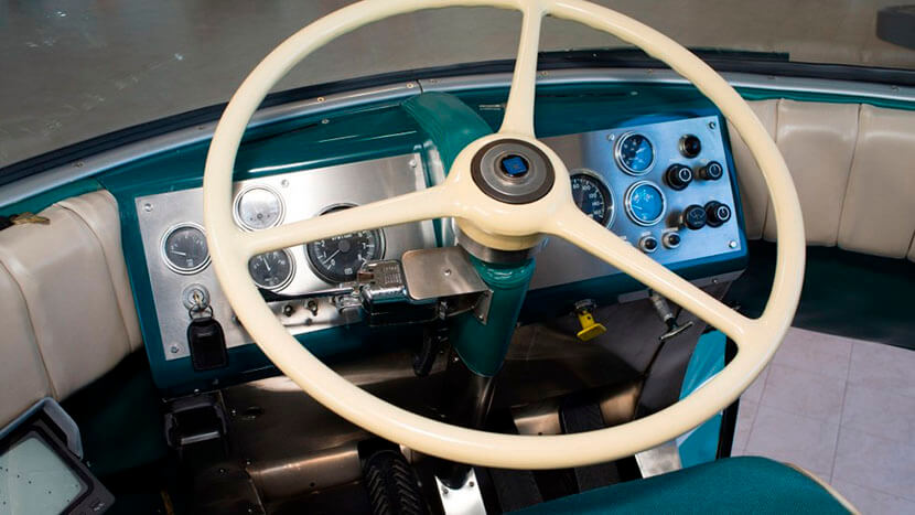 Как, собственно говоря, и кондиционер, поскольку кресло водителя Futurliner располагалось прямо над двигателем. Места в моторном отсеке хватало на рядный шестицилиндровый движок объемом 4949 куб.см, объединенный с 4-ступенчатой коробкой Hydra-Matic.