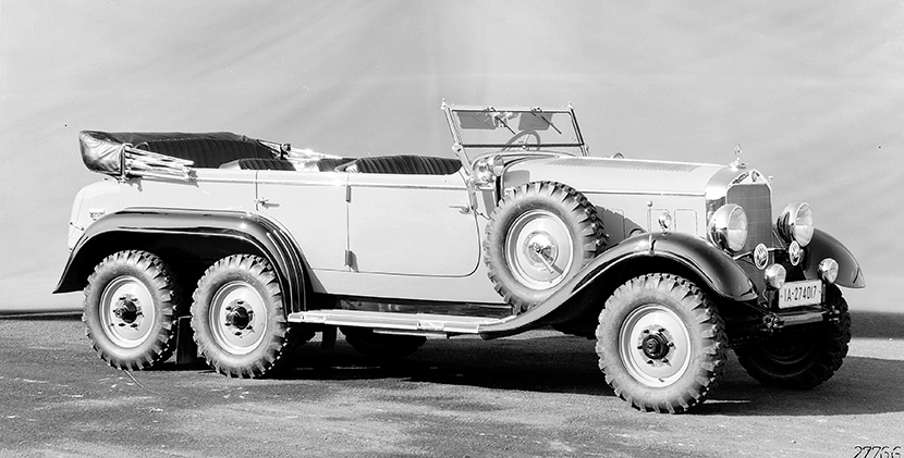 Компания Mercedes-Benz, как ни странно, тоже выпускала трехосный автомобиль, причем в заводском режиме и без подключения каких-то сторонних ателье. Так, модель G4 в кузове W31 собиралась маркой с 1934-го по 1939 год. Да, этот автомобиль с колесной формулой 6х4 предназначался для штабных нужд вермахта, как и большинство другой продукции немецкого автопрома тех лет.