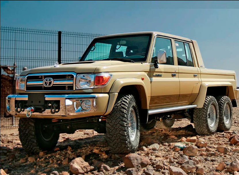 В настоящий момент эта Toyota Land Cruiser 6x6 является самым популярным в мире шестиколесным внедорожником. Так, на его базе сегодня производится различная спецтехника вроде подъемных кранов и обслуживающих машин для аэродромов. Стоимость такого внедорожника составляет около $145.000.