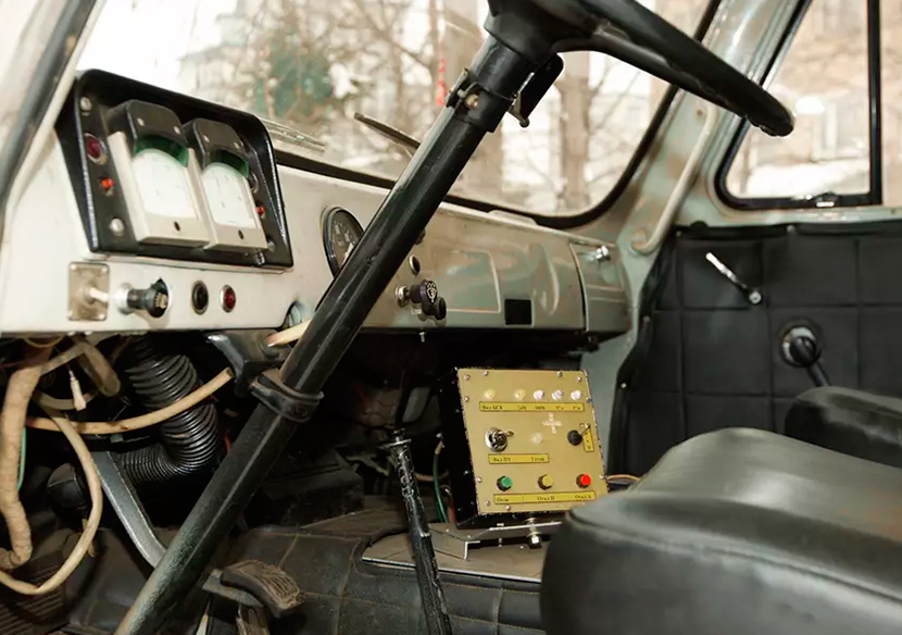 Мы уже говорили, что внешне УАЗ-3801 почти не отличался от обычной «буханки». Зато необычная панель приборов легко выдавала в нем электромобиль. Так, под рукой водителя находился пульт управления электрической установкой, амперметры и вольтметры. Педалей также было три: тяговая, штатный тормоз и рекуперация.
