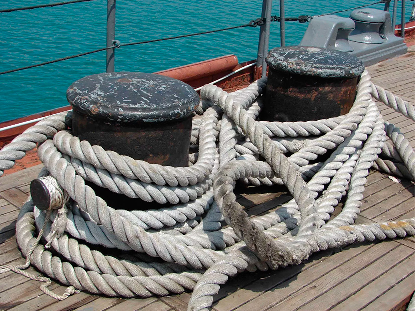 Корабельный канат является высокопрочным, устойчивым к морозам изделием, которое не боится высокой влажности и сырости. Даже со временем не теряет своих эксплуатационных характеристик, поэтому его можно хранить в любых условиях. Главным минусом такого троса является сложность в выполнении петли – всему виной толстое плетение волокон. Как правило, изготавливается из текстильных материалов. Его разрывная нагрузка при этом составляет 45 тонн.
