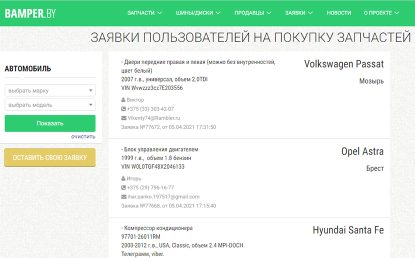 И сегодня у нас есть все основания полагать, что команда Bamper.by идет в правильном направлении. Теперь это крупнейший ресурс для поиска, продажи и покупки запчастей в Беларуси: