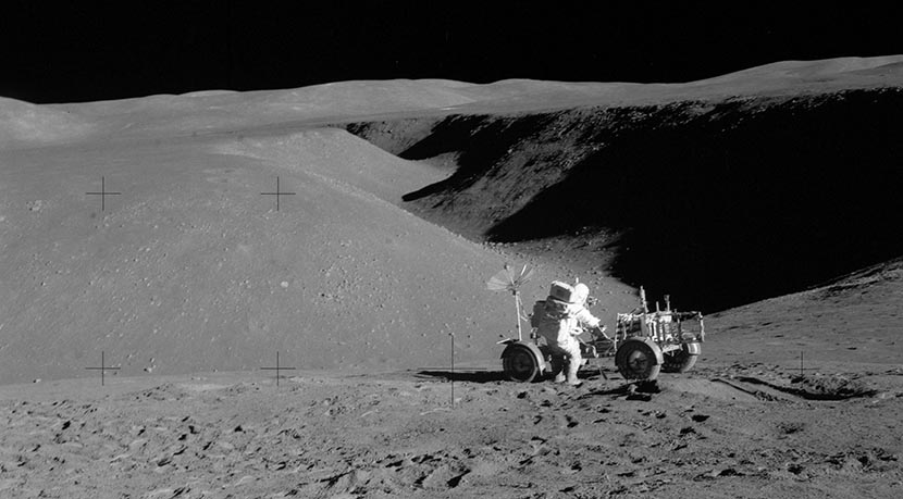 Интересно: цветная телевизионная камера с 6-кратным объективом-трансфокатором, установленная на луномобиле, была оснащена электроприводом для поворота в горизонтальной и вертикальной плоскостях и изменения фокусного расстояния, благодаря чему ею могли управлять не только астронавты, но и оператор с Земли. Это значительно расширило возможности видеосъемок и даже позволило заснять старт лунного модуля с Луны. Для выполнения такой съемки луномобиль пришлось заранее оставить на спутнике в нужной позиции и на таком расстоянии от модуля, чтобы в поле зрения его телекамеры он попадал целиком.