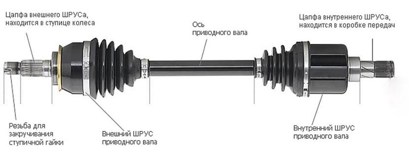 Наружный шарнир равных угловых скоростей соединяет вал со ступицей колеса, а внутренний – с коробкой передач или мостом. Задачей первого является передача крутящего момента на колесо при любых углах его поворота и наклона, а вот второй компенсирует несоответствие центров вращения приводного вала с трансмиссией. При этом тот и другой необходимы для передачи крутящего момента на колеса с полной мощностью, без каких-либо дефектов и улучшают управляемость транспортного средства.