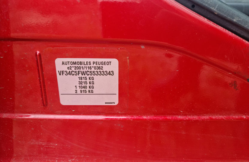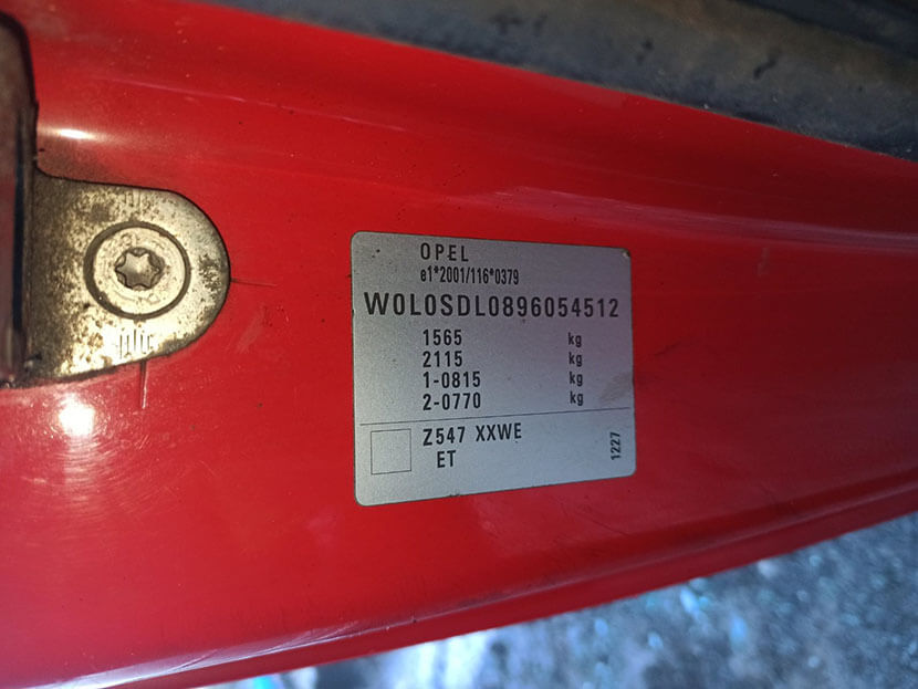 Этикетка на левой передней стойке (реже на пороге) кузова, видимая при открытой двери водителя.