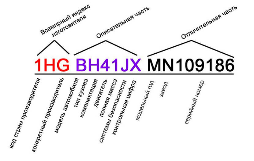 Первые три символа, с которых начинается «шифр», называются WMI (аббревиатура от World Manufacturer Identifier), что в переводе с английского означает «всемирный идентификационный код изготовителя».