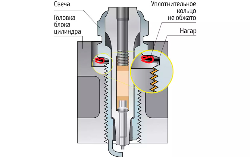 Последствия здесь будут плачевными: в худшем случае придется собирать осколки элемента на дне колодца, в лучшем – герметичность керамического изолятора в свечном корпусе окажется нарушена, что создаст прорыв газов внутри свечи. Последнее будет заметно по следам нагара на керамическом изоляторе выше стального корпуса.