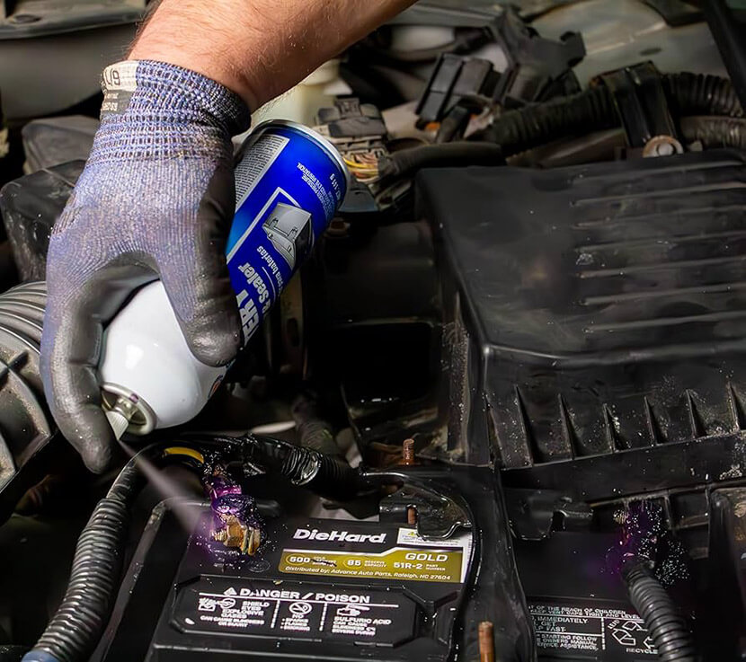 2.Осмотрите клеммы АКБ и наконечники проводов. Удалите белый/зеленый налет (оксиды) и грязь с помощью специальной щетки для клемм (есть с конусной и плоской щетиной) и раствора для очистки клемм или водного раствора пищевой соды (1 ст.л. на стакан воды). Налейте на клеммы, дайте пошипеть, смойте водой, тщательно высушите. НЕ используйте слишком крупную наждачную бумагу (абразив P100 и мельче допустим) – она царапает свинец и медь, ускоряя последующее окисление. Мелкая наждачка или специальные щетки предпочтительнее.