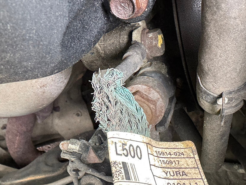 2. Во время работ под капотом внимательно осматривайте провода и наконечники. Особое внимание – проводу двигатель-кузов, поскольку он подвержен высоким температурам (может задубеть/потрескаться изоляция), вибрации, воздействию грязи и реагентов. Признаки повреждения найдете без труда — это трещины, оплавление, коррозия, перетертости. Проверьте также основной провод от АКБ к кузову, ищите трещины изоляции, следы перегрева (оплавление, потемнение), коррозию жил (особенно у наконечников), признаки перетирания о кузов. На других проводах массы — к ЭБУ, к блокам фар, к топливному насосу и т.д. – также возможны повреждения изоляции, окисление наконечников.