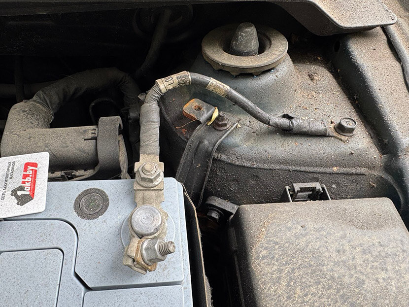 2. Основной провод массы от «минуса» аккумулятора к кузову/раме — коррозия под клеммой или в месте крепления к кузову, обрыв.
