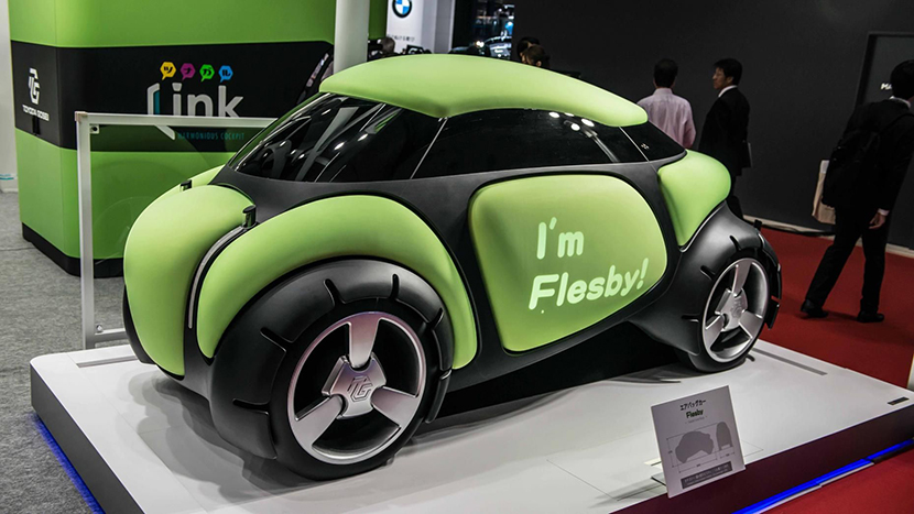 Компания Toyoda Gosei, производитель автомобильных комплектующих в составе концерна Toyota Group, пошла дальше, представив на Токийском автосалоне 2015 года концепт-кар Flesby II, кузов которого был выполнен из материала e-rubber (от англ. «электронная резина»).