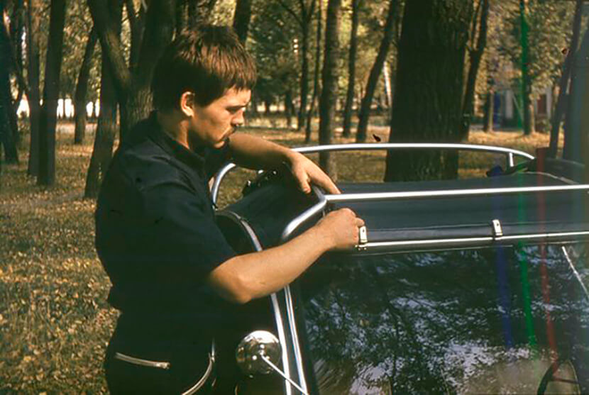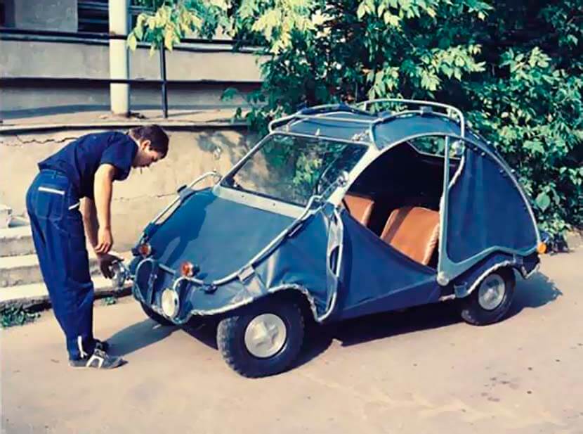 «Я ведь хотел сделать транспортное средство с прицелом на гражданское применение, – говорит дизайнер. – Тем более что в бывшей Чехословакии такое уже выпускалось (упомянутая мотоколяскаVelorex , прим. авт.) Поэтому все дизайнерские абстракции мной были исключены. Мое ноу-хау заключалось в том, что каркасный корпус автомобиля не был скрыт тентом, а наоборот, находился снаружи. Ткань при этом удобно пристегивалась с помощью хлястиков, застежек и пряжек».