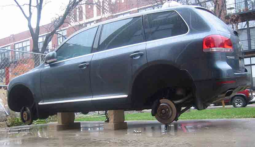 В результате автомобиль остается без колес, печально покоясь на стопках кирпичей, словно какой-нибудь давно лишившийся хозяина «король двора». Для придания большего сходства с такого рода металлоломом вандалы не преминут еще что-нибудь от него оттяпать… При этом кража всего комплекта колес у профессионалов занимает от 5 до 15 минут. Стоит ли говорить, что шины с дисками больших размеров очень дороги: за похищенные колеса на Nissan X-Trail, Toyota RAV4 или Toyota Land Cruiser 200 страховые компании, как правило, выплачивают 150-300 тыс. российских рублей.