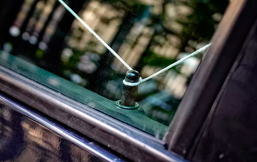 Другой вариант воздействия на поверхность – наклеить широкие полоски армированного скотча, который просто обязан быть под рукой у каждого автомобилиста. Принцип действия тот же: пытаемся приоткрыть окно, а через образовавшуюся щель дотягиваемся до дверной ручки, чтобы разблокировать замок. Можно подцепить рычажок на двери бечевкой с заранее сделанной на ней петлей (как на фото).