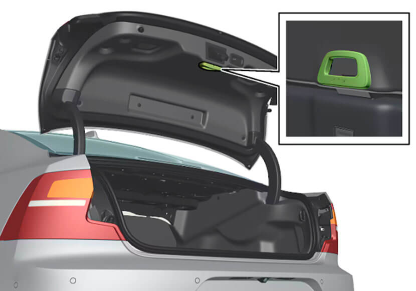 Нас интересует условный участок, расположенный над замком пятой двери (багажника). В некоторых моделях авто, главным образом произведенных для американского рынка, вы можете увидеть там аварийную ручку открытия багажника, на ней даже схематично изображен порядок действий. Если этой ручки нет, найдите пластиковый лючок, расположенный по центру обшивки, прямо над замком. Вам необходимо его открыть, чтобы получить доступ к нужному механизму.