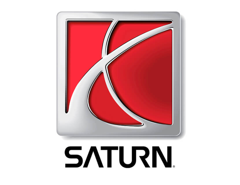Фирменный знак Saturn выполнен сообразно названию в виде астрологического изображения колец Сатурна, вписанных в вертикальный прямоугольник (или в квадрат – зависит от года выпуска авто) с красным фоном и серебряным кантом.