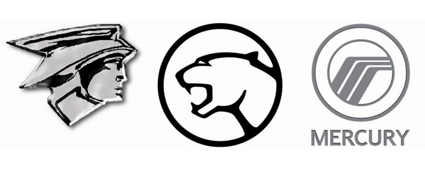 Торговая марка Mercury была зарегистрирована в 1938 году. Название для нее выбрал Эдсел Форд, тот самый, что придумал дизайн маскота для Lincoln. Меркурий, римский бог торговли и скорости, стал символом этого бренда, поэтому на первом логотипе изображался его профиль. Mercury выпускал престижные автомобили для амбициозных молодых людей, поэтому фирменная концепция считалась удачной. Основными цветами визуальной айдентики марки всегда были серебристый и черный.