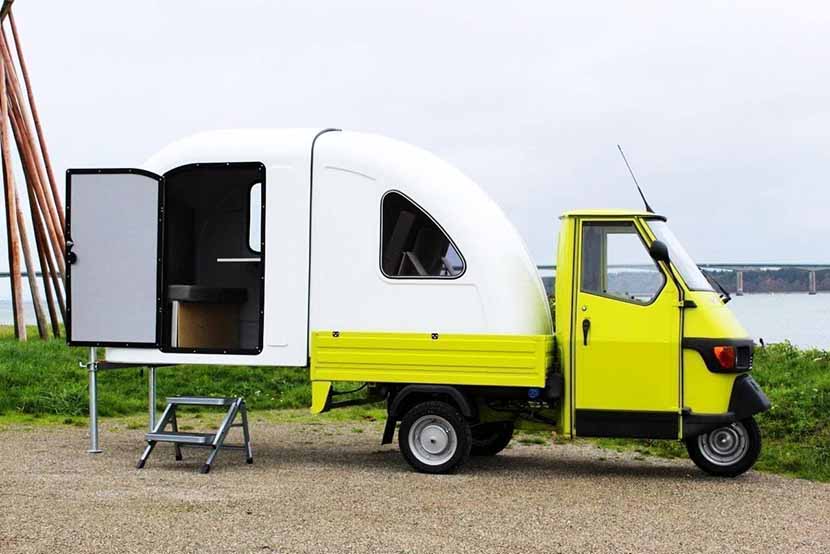 К примеру, датскому бренду Wide Path удалось запатентовать автодом, созданный на базе мотороллера Piaggio. В отличие от множества других итальянских трехколесников, в которые владельцы интегрировали какое-то подобие жилого блока, этот проект уникален тем, что фактическая площадь дома на колесах даже больше, чем сам грузовичок. Все потому, что жилой модуль, размещенный на грузовой платформе Piaggio, может раздвигаться, увеличивая свои габариты.