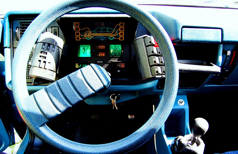 Что касается рулевого колеса, то в этом автомобиле оно было почти квадратным, но с закругленными углами. Такая форма по замыслу производителей должна была существенно упростить вождение тяжелой машины. По бокам от руля в приборную панель были интегрированы овальные «рога» с клавишами управления АКПП и климатической установкой. Обратите также внимание на горизонтальную шкалу спидометра – такой дизайнерский ход мало где встретишь.