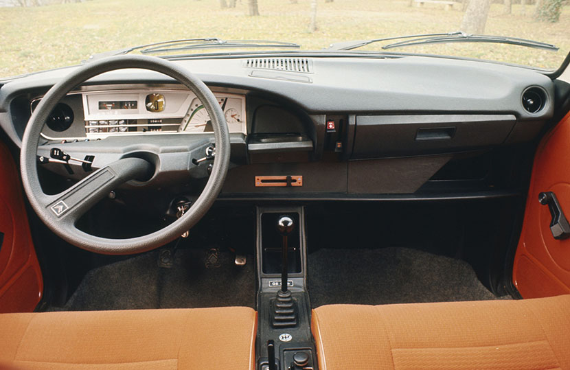 После рестайлинга 1976 года панели придали «пристойный» вид с центральным расположением циферблатов приборов. Но уже в 1979-м, с появлением лифтбека GSA, «приборке» вернули индивидуальность: помимо барабанных счетчиков спидометра и тахометра на ней появилась футуристическая схема транспортного средства в стиле корабля Interprise bp из научно-популярного сериала Star Trek, а также элемент управления PRV (Rain Road City) – цилиндр, объединяющий элементы управления «дворниками», клаксоном и «поворотниками». Благодаря подобному новаторству дизайнеров Citroёn данная модель долгие годы являлась самым продаваемым авто марки: в общей сложности было произведено 1.896.742 единицы GS и 576.757 экземпляров GSA.