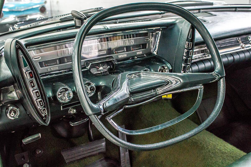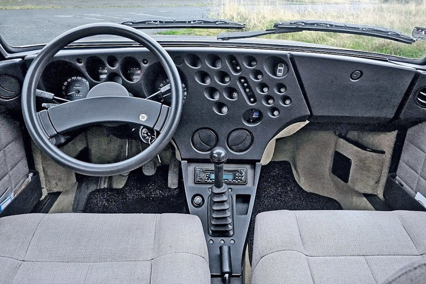 Но самым необычным и выдающимся в этом автомобиле являлся внутренний функционал, вернее, его оформление. Первые годы выпуска в модели использовалась новаторская панель приборов с барабанным спидометром и линзовым «окошком», тахометром на «четверть круга» и раздельными кластерами других технических показателей. Еще одной знаковой особенностью модели был односпицевый руль и «крутёлка» радиостанций, расположенная на центральном туннеле рядом с ручником.