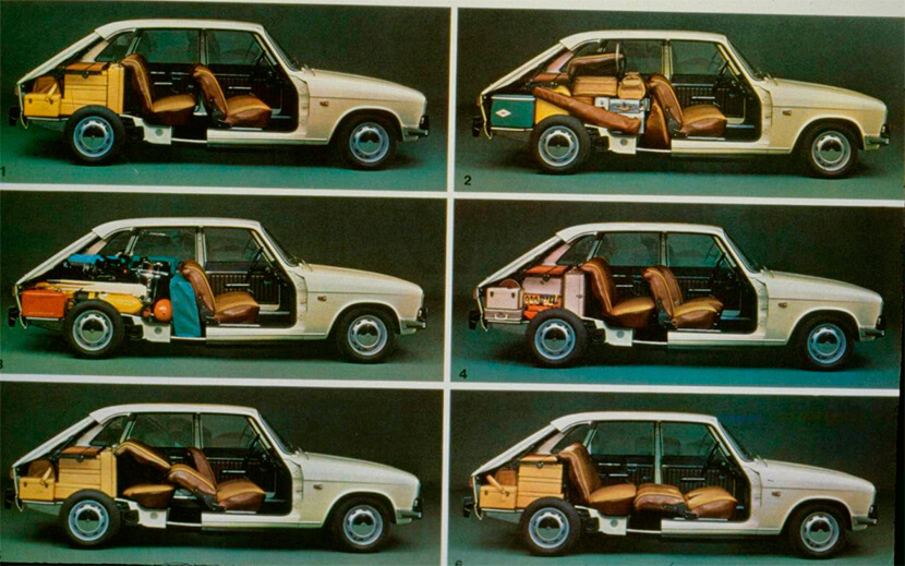 Во-первых, в этой машине был трансформируемый салон: при сдвигании задних сидений вперед полезный объем грузового отсека увеличивался с 346 до 424 л. При этом сзади всё еще можно было разместить троих пассажиров. А максимальный полезный объем багажника составлял аж 1200 литров, правда, для этого задние сиденья нужно было демонтировать.