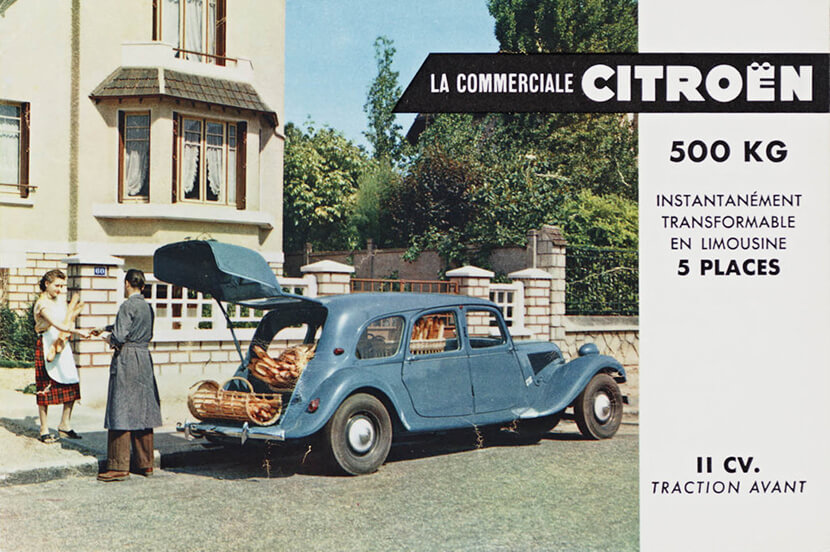 Интересующая нас модификация Commerciale, поступившая на рынок в 1938 году, оснащалась покатой двустворчатой дверью сзади и была предназначена для представителей малого бизнеса (зеленщиков, мясников и мелких торговцев). После Второй мировой Citroën упростил конструкцию задней створки, сделав ее цельной и открывающейся вверх на максимальное расстояние.