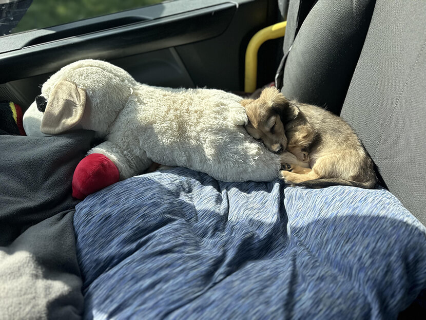 • положите в салон любимую игрушку или подстилку питомца: знакомый запах успокаивает;
