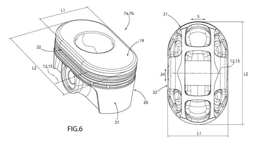 Конечно же, овальные поршни для нормальной работы требуют и цилиндров соответствующей формы. Производитель вытянул их по одной оси и сплющил по другой, сделав более плоскими. Такая форма позволит создать более компактный двигатель без сокращения его рабочего объема. Это, в свою очередь, даст Ferrari возможность улучшить развесовку будущих авто, одновременно с этим освободив часть подкапотного пространства для навесного оборудования, например электронных компонентов.