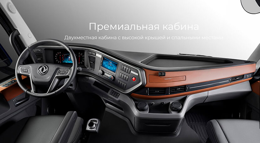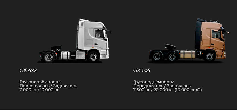 В презентационной речи представители Dongfeng не просто так упоминают совместную работу китайских специалистов с европейскими. Видимо, в первую очередь это дает им право использовать проверенные силовые агрегаты сторонних производителей. Так, в отличии от колесной формулы и региона эксплуатации (есть варианты 4х2 и 6х4), тягач GX комплектуется 13-литровыми турбодизелями Cummins мощностью 518 л.с. либо 520 л.с.